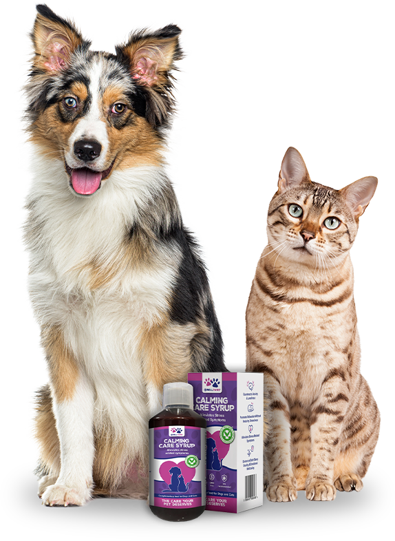 Anxious cats and dogs, this one’s for you! Our Calming Care Syrup naturally counteracts anxiety and promotes relaxation without inducing drowsiness. Take steps towards less stress for your pets in a long-term, constructive way. Our formula features Durelax®, a scientifically proven natural remedy sourced from Melissa Officinalis (Lemon Balm) specifically formulated to mitigate stress-related behaviours in pets.