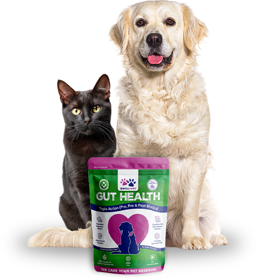 Boost your dog and cat’s gut microbiome with WellPaws Gut Health Chewables, a triple-action treat containing prebiotics, probiotics and postbiotics for good gut health across the board. Our three-pronged recipe promotes better digestive health, provides essential fibre and enhances the gut microbiome to keep your cat and dog’s digestive system operating in perfect harmony.
